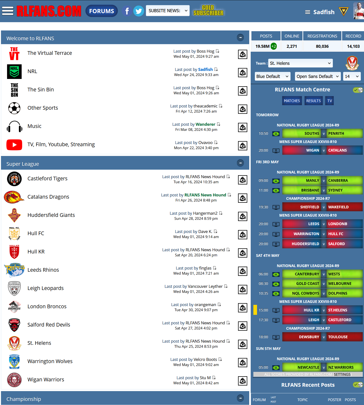 The site is currently funded through the adverts which you see around the site, but we know that some of our registered and regular users find this to be a bit of a distraction. For just £4.99 a month, or £50.00 per year, via PayPal, registered users can make the site third party advert free. Once your subscription has been activated you will see RLFANS.COM as it appears in the screenshot, guaranteed third party advert free (the only adverts which you will see are the ones in the right-hand column). If you maintain your monthly direct debit, you will retain an advert free site. Please make sure you provide your username to go advert free.