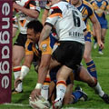 Quote Revol="Revol" The River Aire would physically mark the divide between Rhinos fans in the North of the city and Hawks fans in the South. Plus it would be interesing to weed out the glory hunters from the true Rhinos fans (ie - The folk you see walking round the areas of South Leeds wearing Rhinos jackets etc).'"