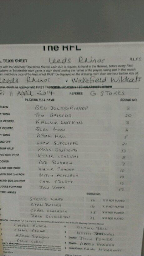 | No mathers again. Sammut at full back. Walshaw the other to drop out